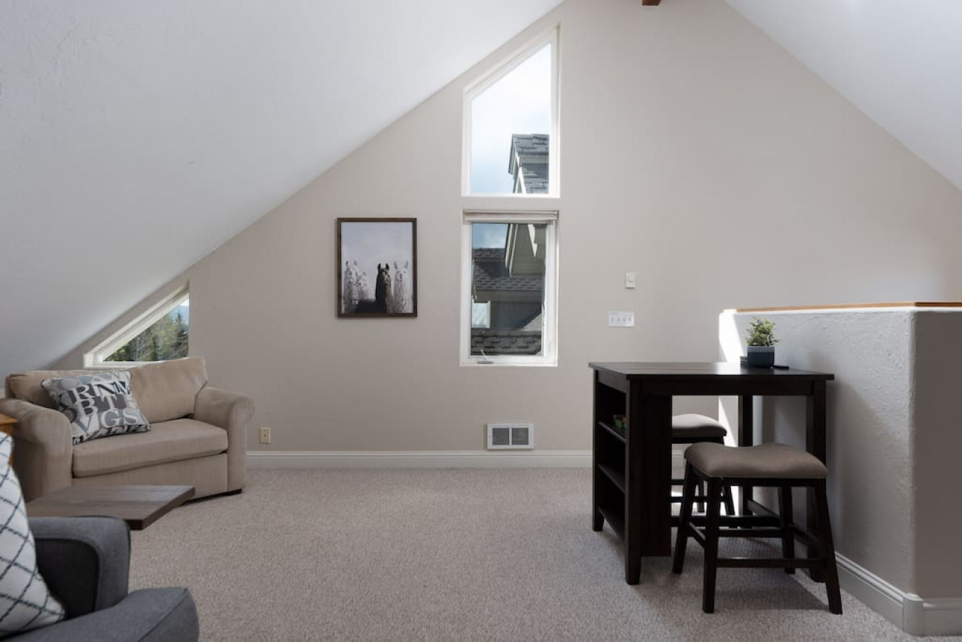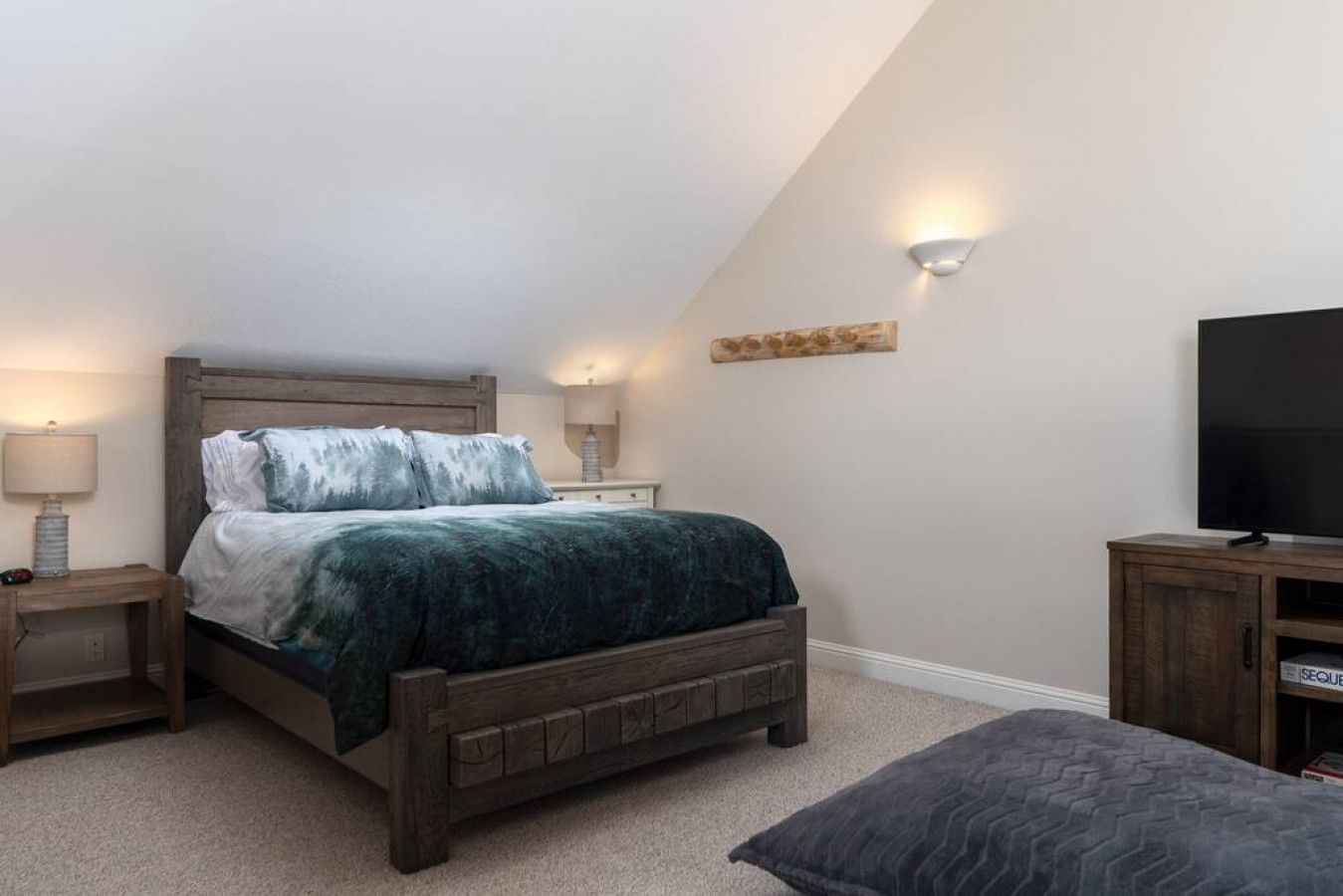 Ideally located on Ski Hill Road, just a few blocks from downtown Driggs and on the way to Grand Targhee, this spacious unit in the Powder Valley Condos is the perfect getaway for your next Teton Valley vacation! The Powder Valley subdivision offers easy access with a shuttle straight to Targhee in the Winter months! With two full bedrooms—both with their own bathrooms and one with a private balcony—and a bedroom loft complete with a cozy sitting area (pull out sofa) and queen-sized bed, this home comfortably sleeps eight. Downstairs, find a newly furnished sitting area with a gas fireplace for those chilly winter nights and a bright and airy cathedral ceiling to keep you cool in the summers. The stylish, sun-drenched kitchen and dining room include a breakfast bar and full table to suit all of your meal-time needs. And make sure to plan for a bar-b-que night or two to take advantage of the grill, deck, and those gorgeous valley views! Finally, know that with an included washer and dryer and attached one-car garage, you’ll have plenty of space to store your gear and keep the whole crew prepared to enjoy everything the Teton Valley has to offer! We understand that plans may change, which is why we offer a full refund of bookings canceled at least 14 days before the start of the reservation. Bookings canceled at least 7 days of the stay will receive a 50% refund. For stays of 29 nights or more, an additional insurance fee will apply.