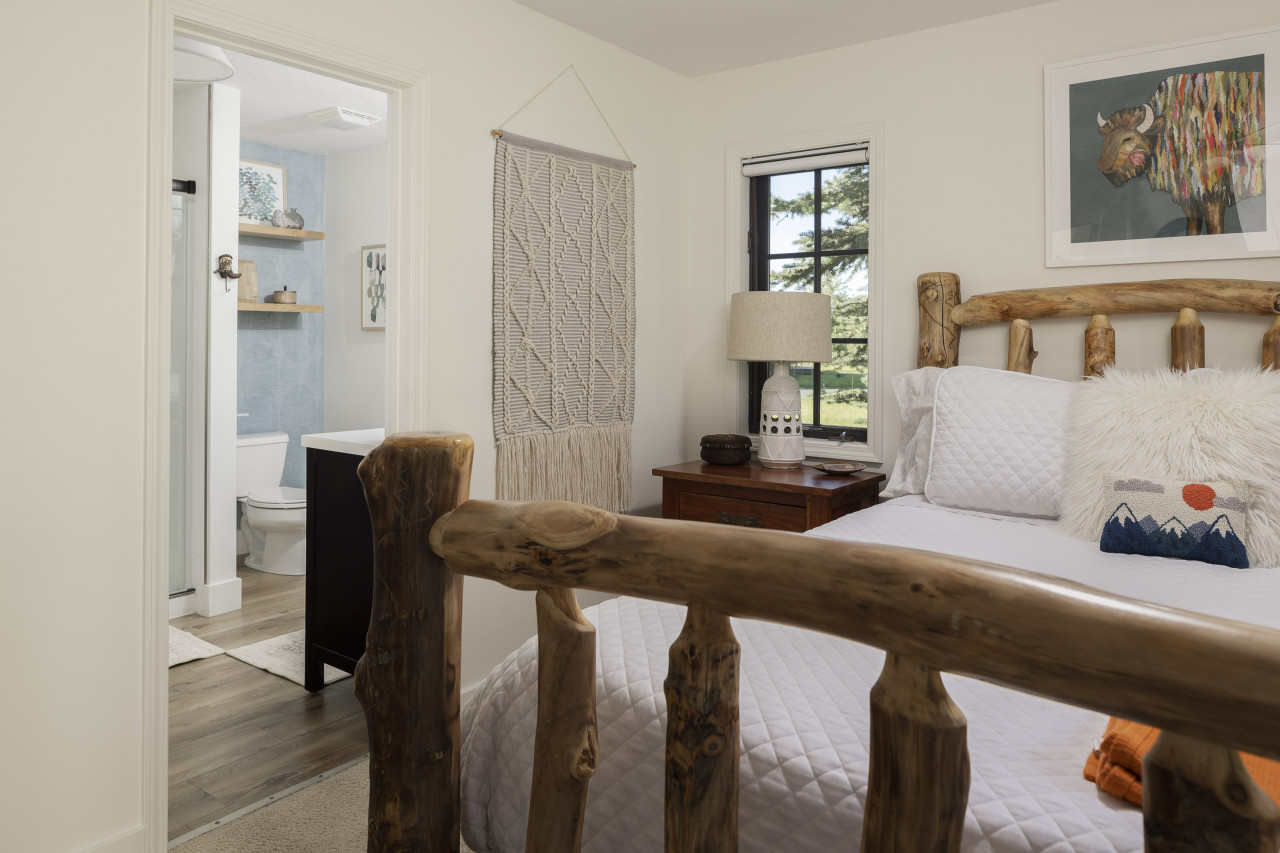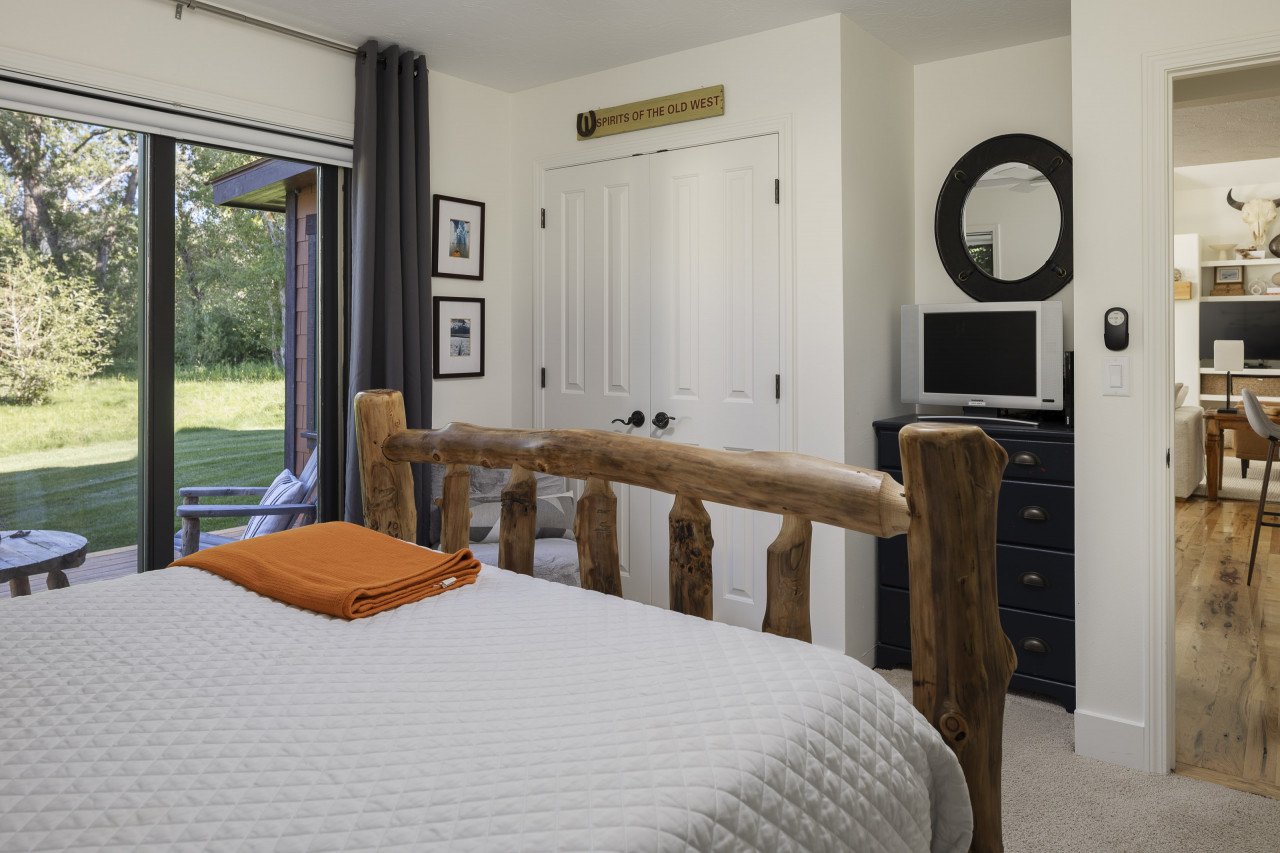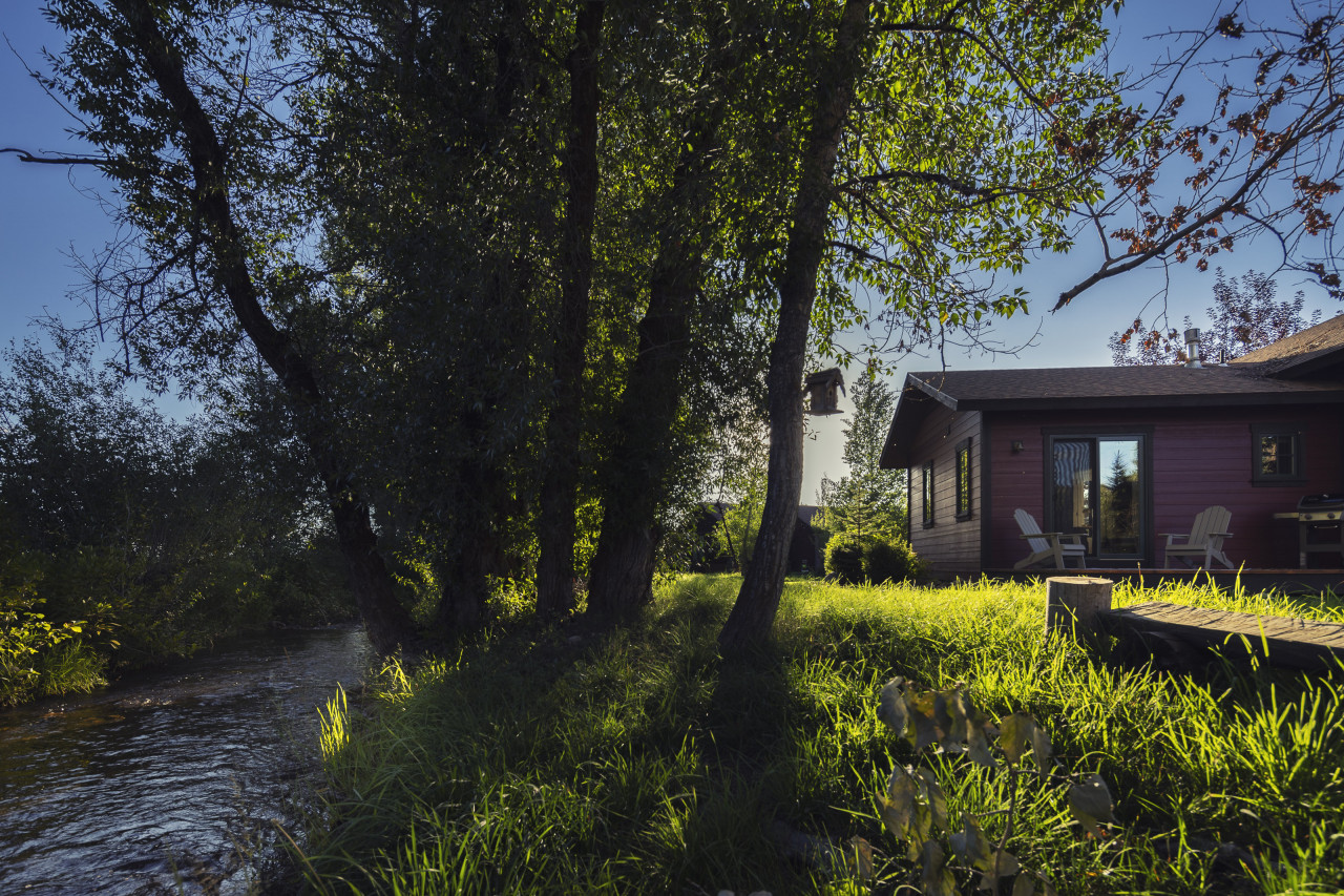 Nestled against the Teton Creek near State Line Road an easy 15 min drive to Grand Targhee Resort. This Mountain Modern home offers peace and quiet for your Teton Valley or Grand Targhee vacation experience. Step inside the cozy, yet modern open concept living room with large picturesque windows facing the back yard and creek. The large deck provides seating outside each bedroom as well as a patio table, chairs and umbrella for outside dinning and a propane fireplace to keep you cozy after a long day of Skiing. Enjoy your coffee in the bright sunroom or on the back deck overlooking the natural landscape or the three humming bird feeders have hummingbirds all morning long or sit around the propane firepit to watch an unforgettable sunset. The two bedrooms are located on opposite ends of the home from each other; each with their own en-suite, and newly remodeled bathrooms! The guest room has a smart TV. Open the windows and listen to the creek flow for a tranquil evening of sleep before the next adventure begins. The master bedroom also has an electric fireplace to enjoy as well as a new beautyrest 12”mattress. A one car attached garage provides room for your adventuring gear, or to park a vehicle in the Winter months. As inviting as the renovated cabin is, the peaceful backyard with a propane bbq, plenty of seating, and propane firepit overlooking the trees and creek will make your vacation a trip of a lifetime! We understand that plans may change, which is why we offer a full refund of bookings canceled at least 14 days before the start of the reservation. Bookings canceled at least 7 days of the stay will receive a 50% refund. For stays of 29 nights or more, an additional insurance fee will apply.