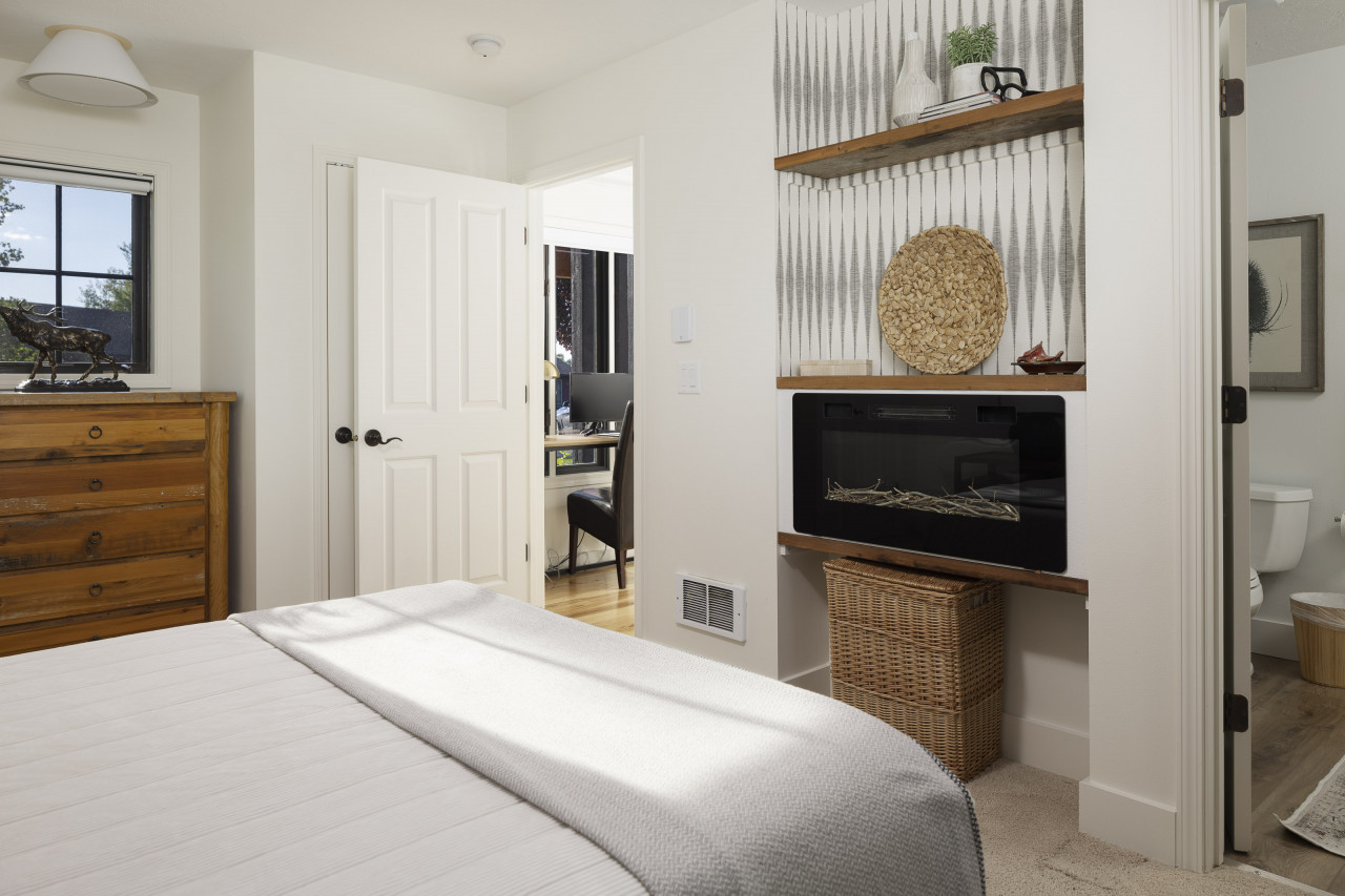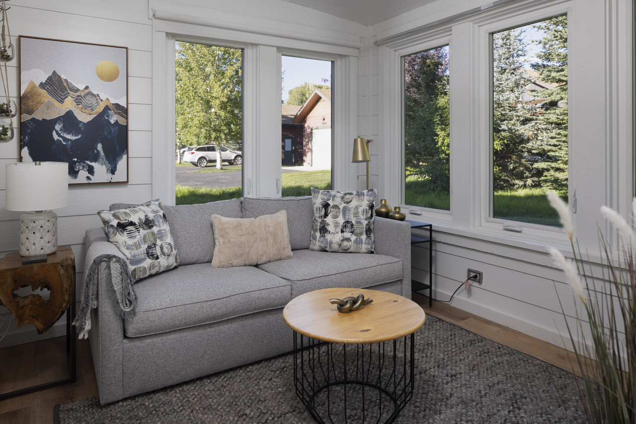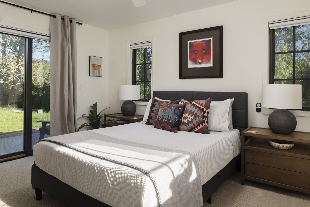 Nestled against the Teton Creek near State Line Road an easy 15 min drive to Grand Targhee Resort. This Mountain Modern home offers peace and quiet for your Teton Valley or Grand Targhee vacation experience. Step inside the cozy, yet modern open concept living room with large picturesque windows facing the back yard and creek. The large deck provides seating outside each bedroom as well as a patio table, chairs and umbrella for outside dinning and a propane fireplace to keep you cozy after a long day of Skiing. Enjoy your coffee in the bright sunroom or on the back deck overlooking the natural landscape or the three humming bird feeders have hummingbirds all morning long or sit around the propane firepit to watch an unforgettable sunset. The two bedrooms are located on opposite ends of the home from each other; each with their own en-suite, and newly remodeled bathrooms! The guest room has a smart TV. Open the windows and listen to the creek flow for a tranquil evening of sleep before the next adventure begins. The master bedroom also has an electric fireplace to enjoy as well as a new beautyrest 12”mattress. A one car attached garage provides room for your adventuring gear, or to park a vehicle in the Winter months. As inviting as the renovated cabin is, the peaceful backyard with a propane bbq, plenty of seating, and propane firepit overlooking the trees and creek will make your vacation a trip of a lifetime! We understand that plans may change, which is why we offer a full refund of bookings canceled at least 14 days before the start of the reservation. Bookings canceled at least 7 days of the stay will receive a 50% refund. For stays of 29 nights or more, an additional insurance fee will apply.