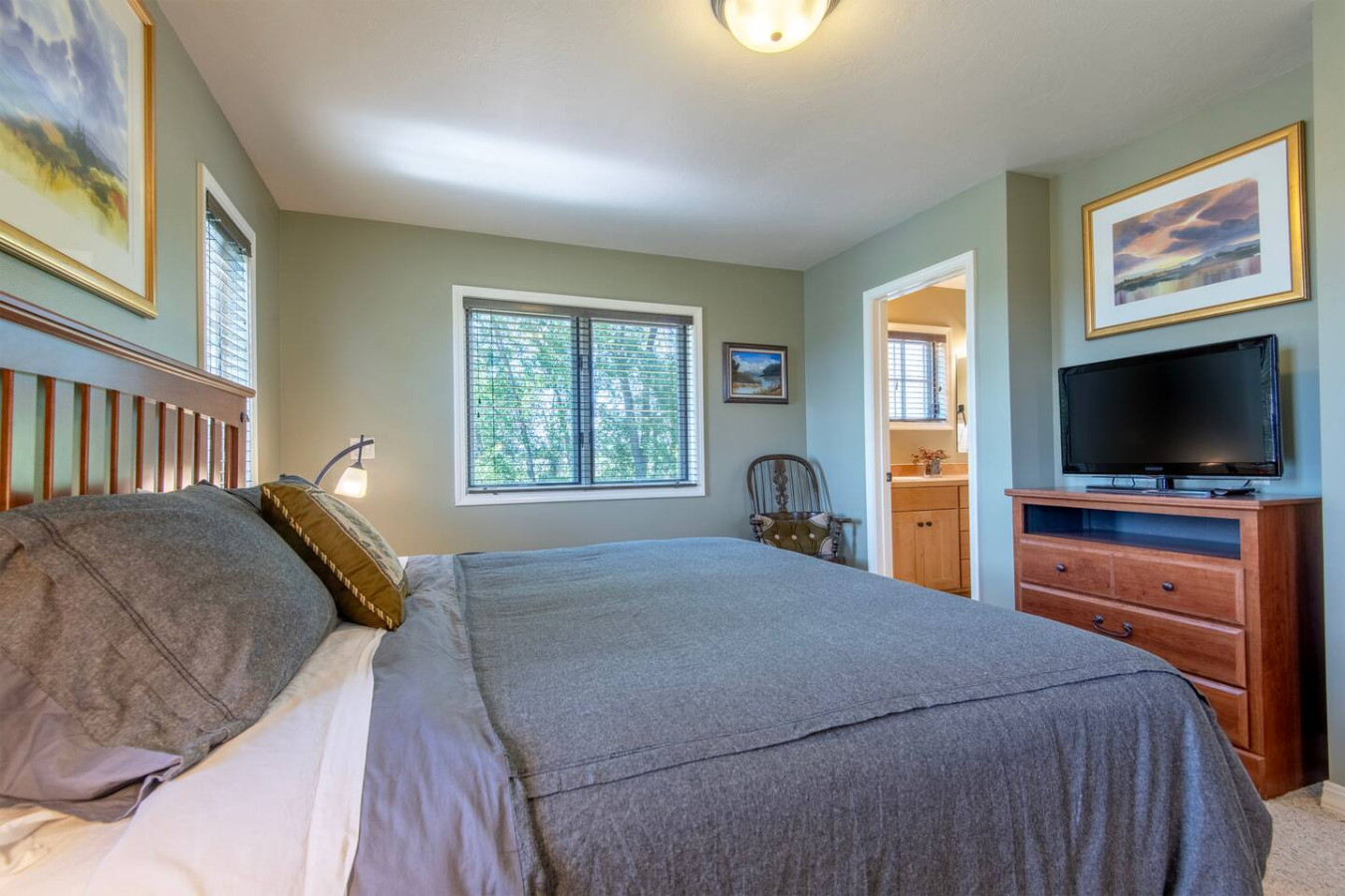 Welcome to Breezy Creek Escape! This inviting home features a cozy indoor fireplace, a private patio with a grill, and beautiful views that make it easy to relax and unwind. Just steps away, a quiet creek adds a peaceful touch to the surroundings, perfect for a morning coffee or an evening stroll. Whether you're gathering with family or enjoying a quiet escape, this is the ideal place to feel right at home. Nestled in a quiet neighborhood just 15 minutes from Grand Targhee Resort, this Mountain Modern home offers a serene setting and great views for your Teton Valley adventure. Step inside to an open-concept living area with large windows overlooking the natural landscape. Just off the entryway, you’ll find a convenient powder half bath, ideal for guests and quick use. The deck features patio seating and a grill, perfect for enjoying meals outdoors after a day of adventure. The two bedrooms are located on opposite ends of the home for added privacy. Each bedroom includes its own private full bathroom, the primary bedroom features a king bed and en suite bath, while the guest bedroom offers two twin beds and its own private bath. A pull-out sofa provides additional sleeping space. In total, the home offers 2.5 bathrooms. Additional amenities include a washer & dryer and a 1-car attached garage for your gear or parking. We offer a full refund for bookings canceled at least 14 days before check-in. Bookings canceled within 7 days will receive a 50% refund. Please note: For stays of 29 nights or more, an additional insurance fee will apply.